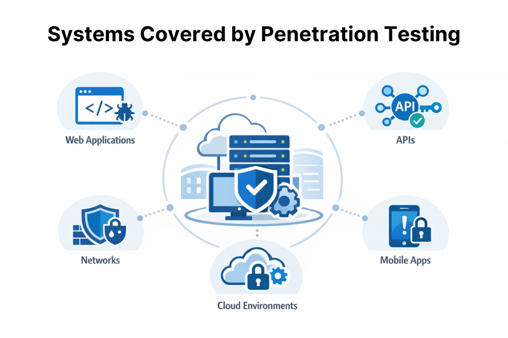 Besides this, penetration testing checks key areas where attacks hit hardest, which can be: