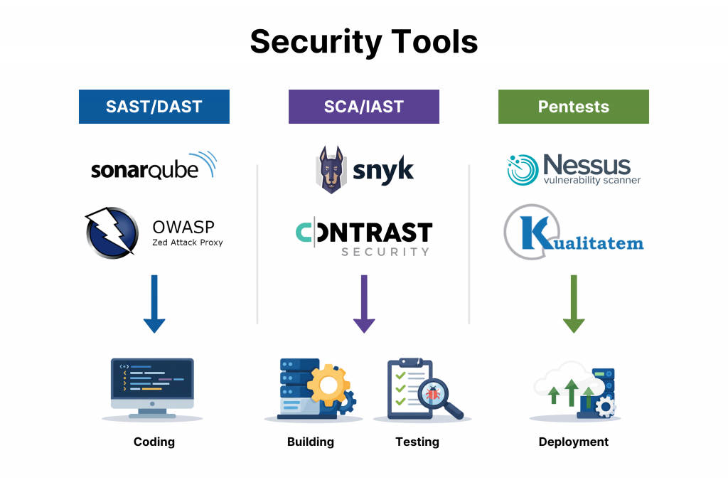 | SCA/IAST | Snyk, Contrast Security | Build/Deploy stages | Dependency CVEs & interactive analysis |