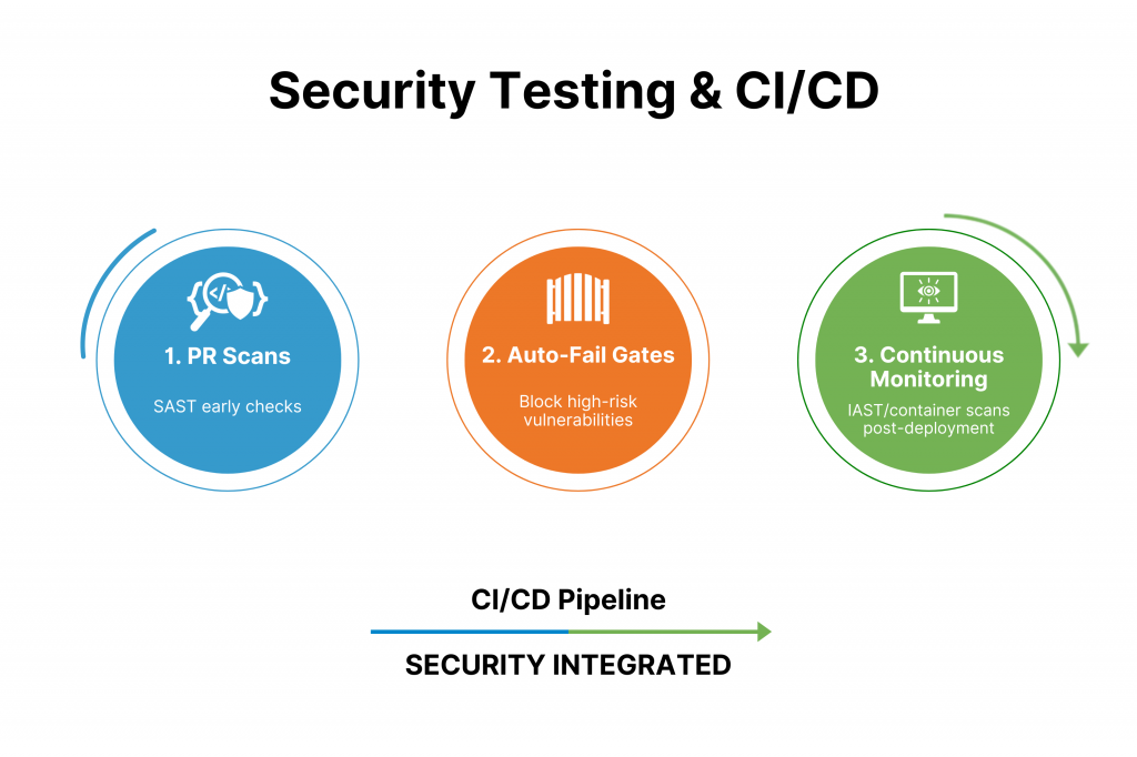 Start with lightweight integrations: Embed SAST scanners in pull requests (PRs) via GitHub Actions or GitLab CI. These provide instant feedback to developers without disrupting workflows.