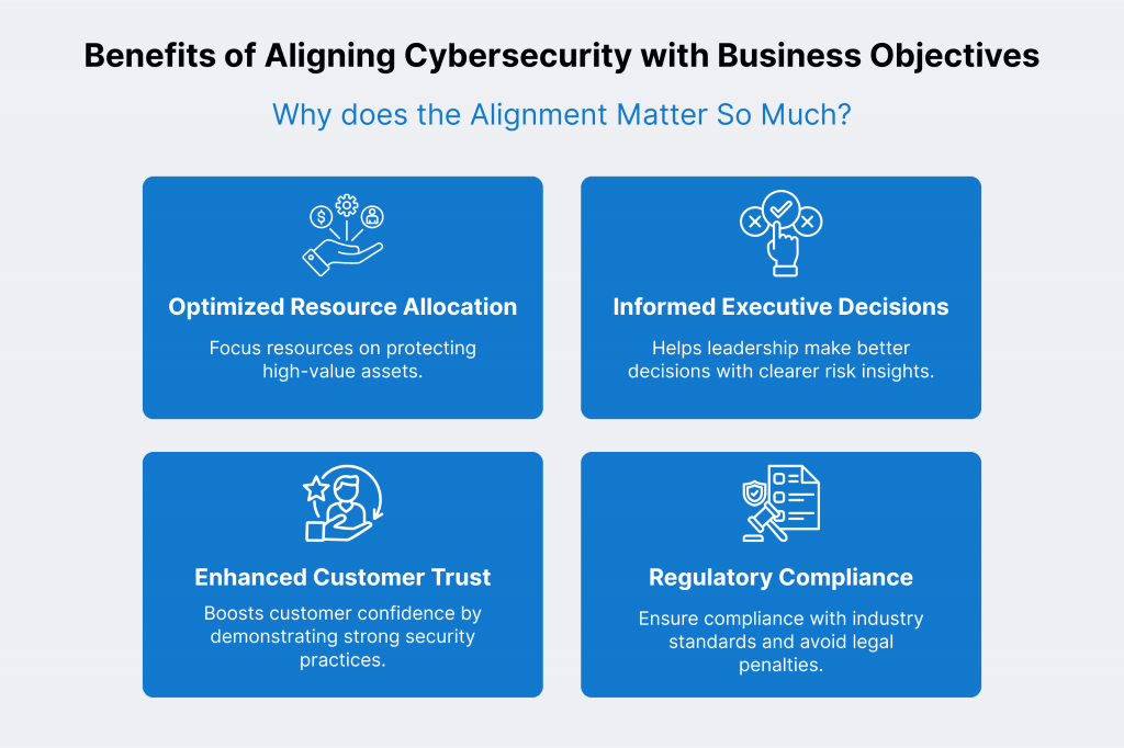 And not just that, opportunities to support business growth might also be missed. So, by aligning cybersecurity with business strategy, organizations get the following benefits.