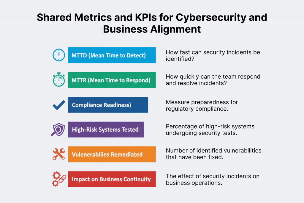 First, there has to be an understanding of the business objectives. Then comes the integration of cybersecurity in business planning. The third step is to conduct a risk assessment with a business lens, while the fourth includes defining shared metrics.
